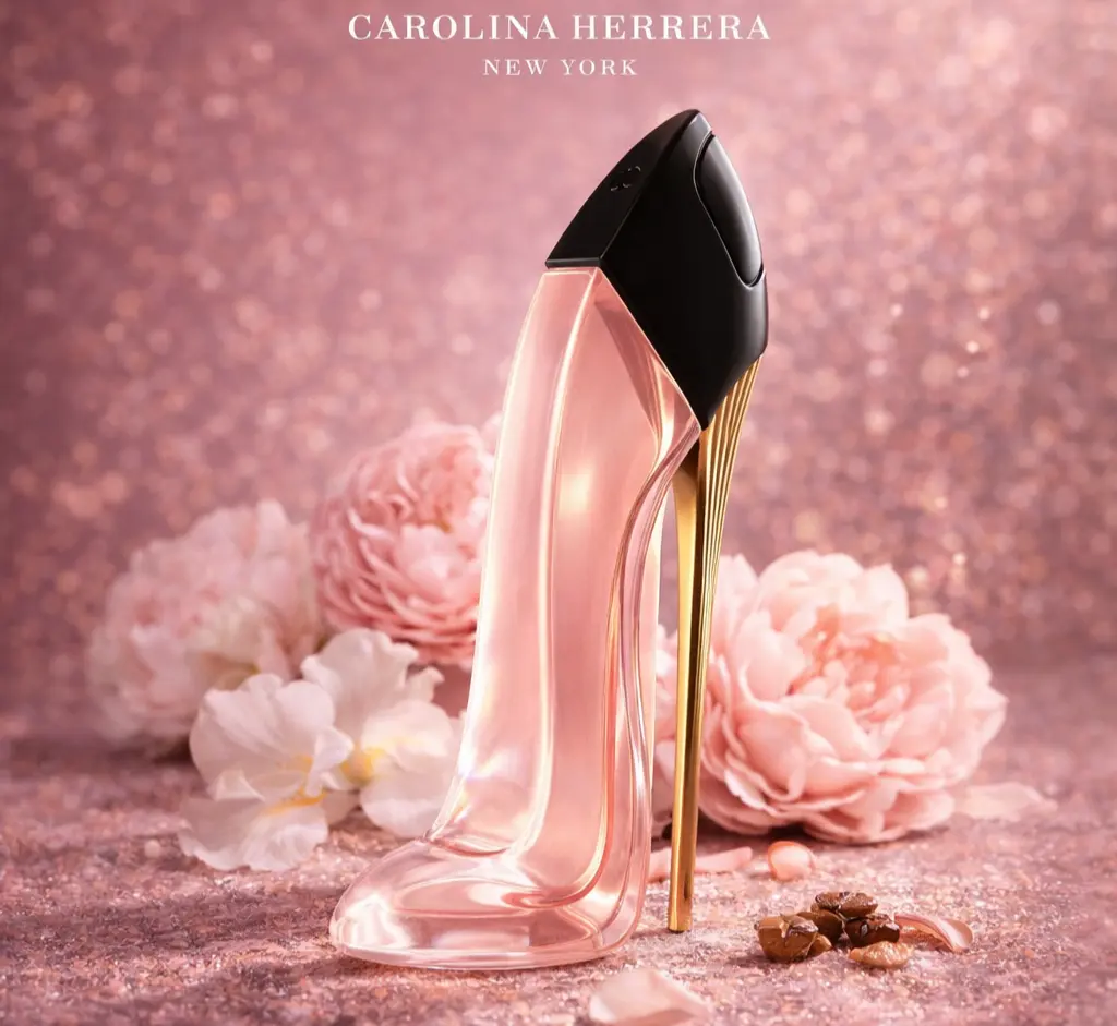 El frasco mantiene el icónico diseño de tacón alto característico de la línea Good Girl, pero en esta versión presenta un elegante tono rosado que simboliza delicadeza, romance y feminidad moderna.