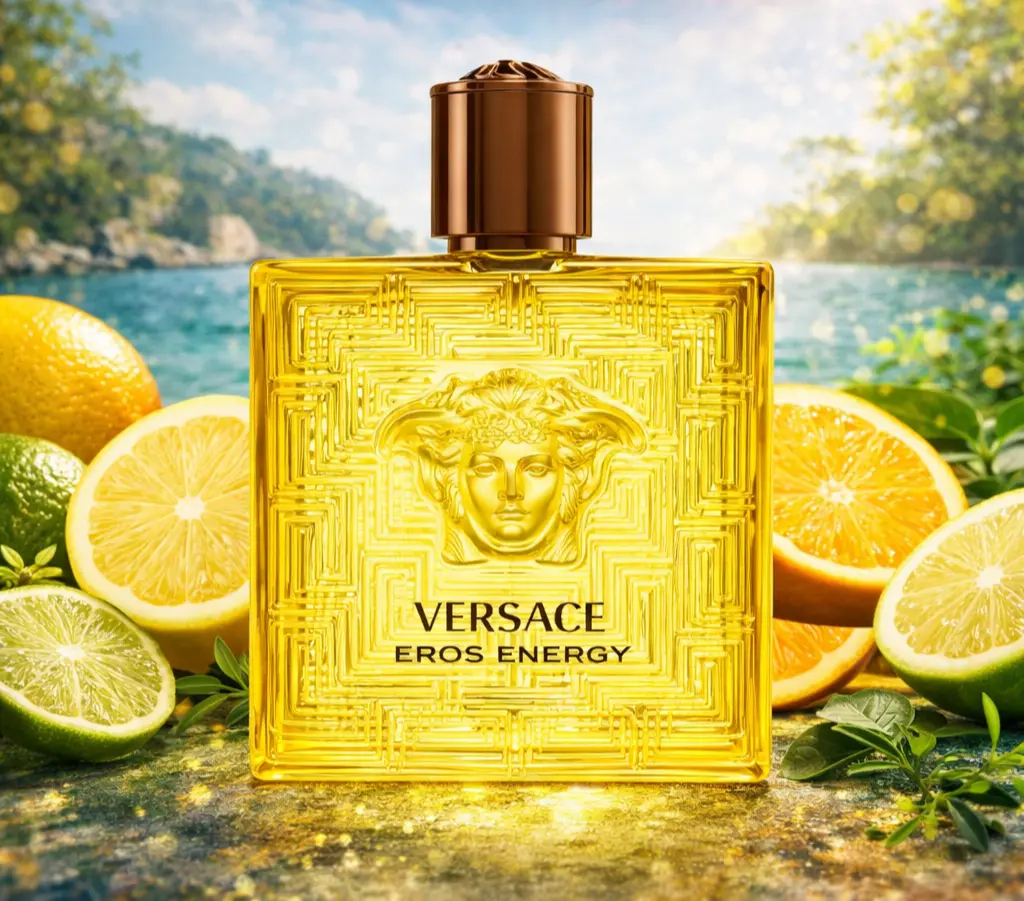 Versace Eros Energy abre con una mezcla vibrante de cítricos mediterráneos que aportan frescura y vitalidad.